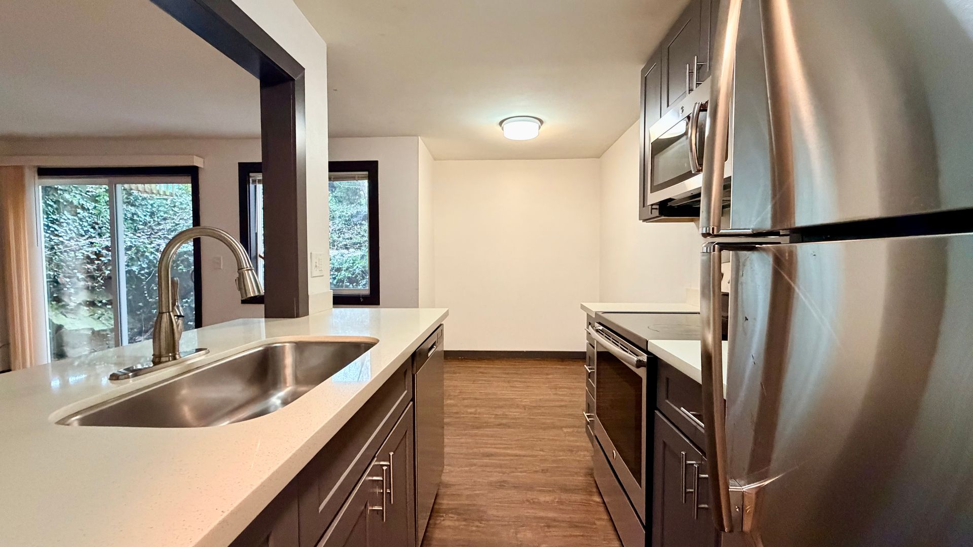 - Full-size stainless steel appliances