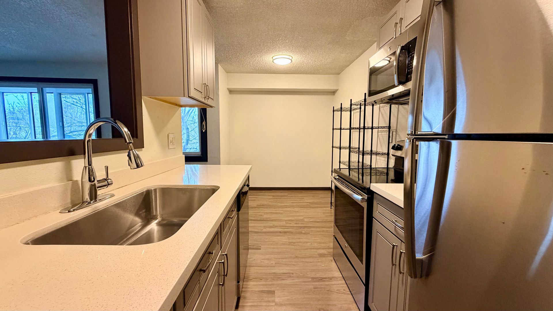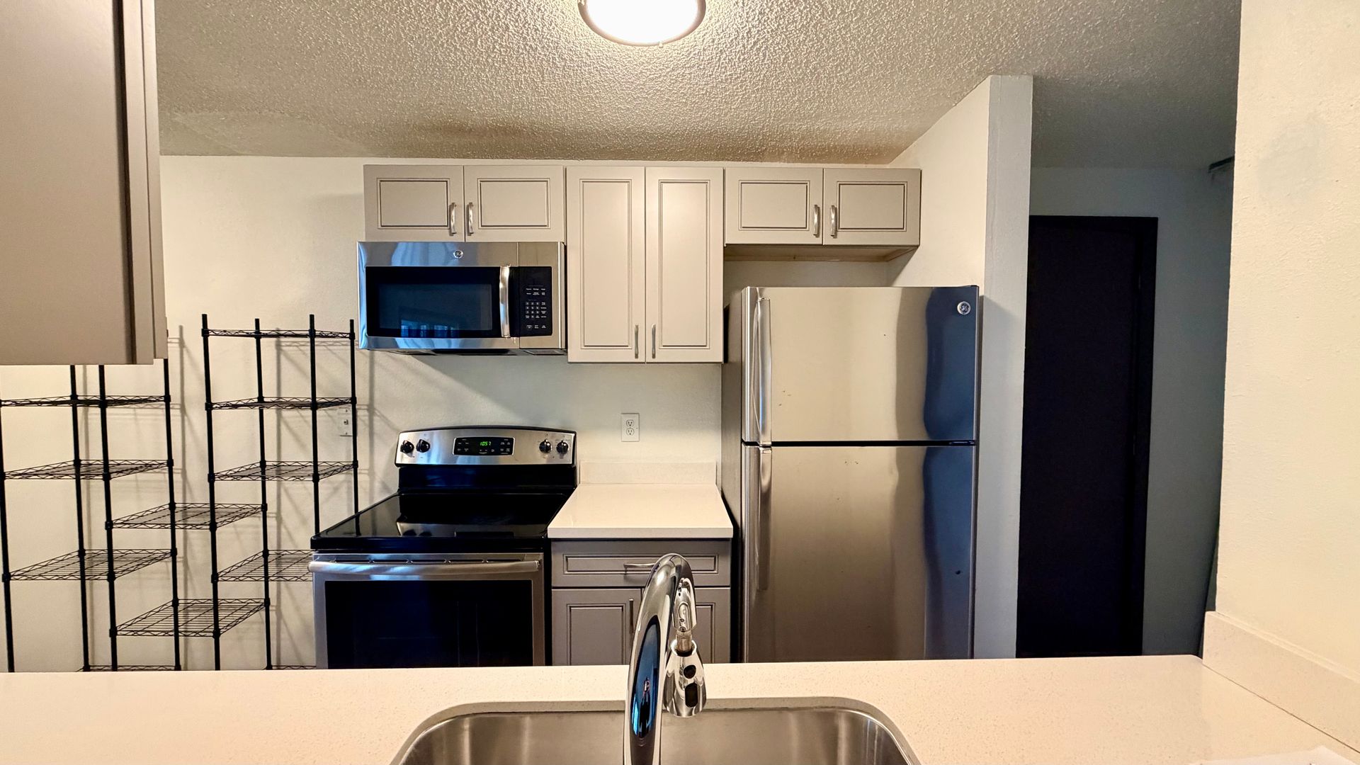 - Full-size stainless steel appliances