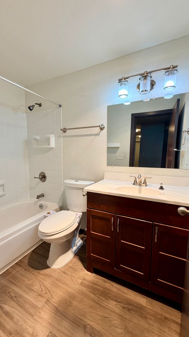 - Wood-style floors throughout